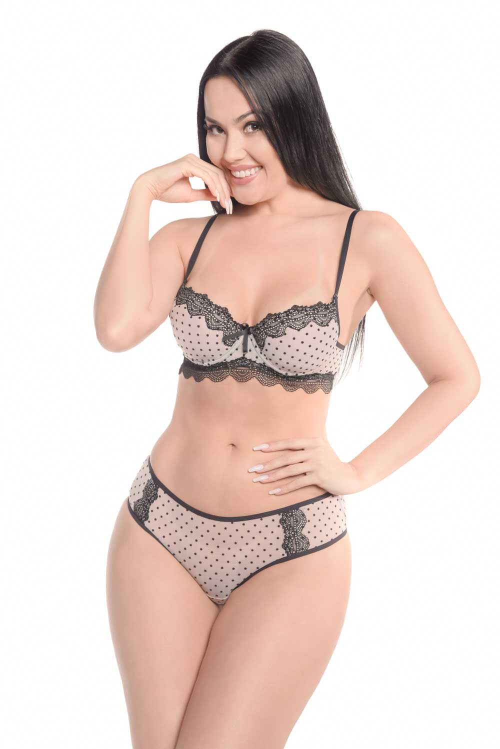 Descrição do produto Calcinha Brasileira em tule poá e renda