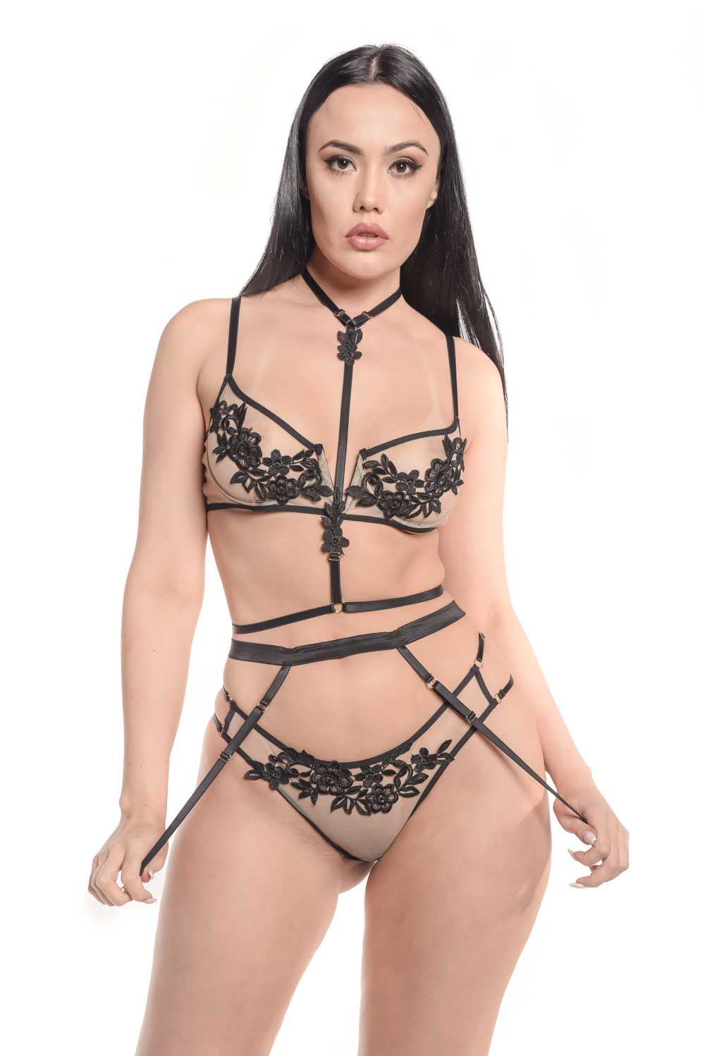 Descrição do produto Calcinha em tule ilusion com bordado guipir Composição Bordado 100% poliamida, tule 90% poliamida e 10% elastano